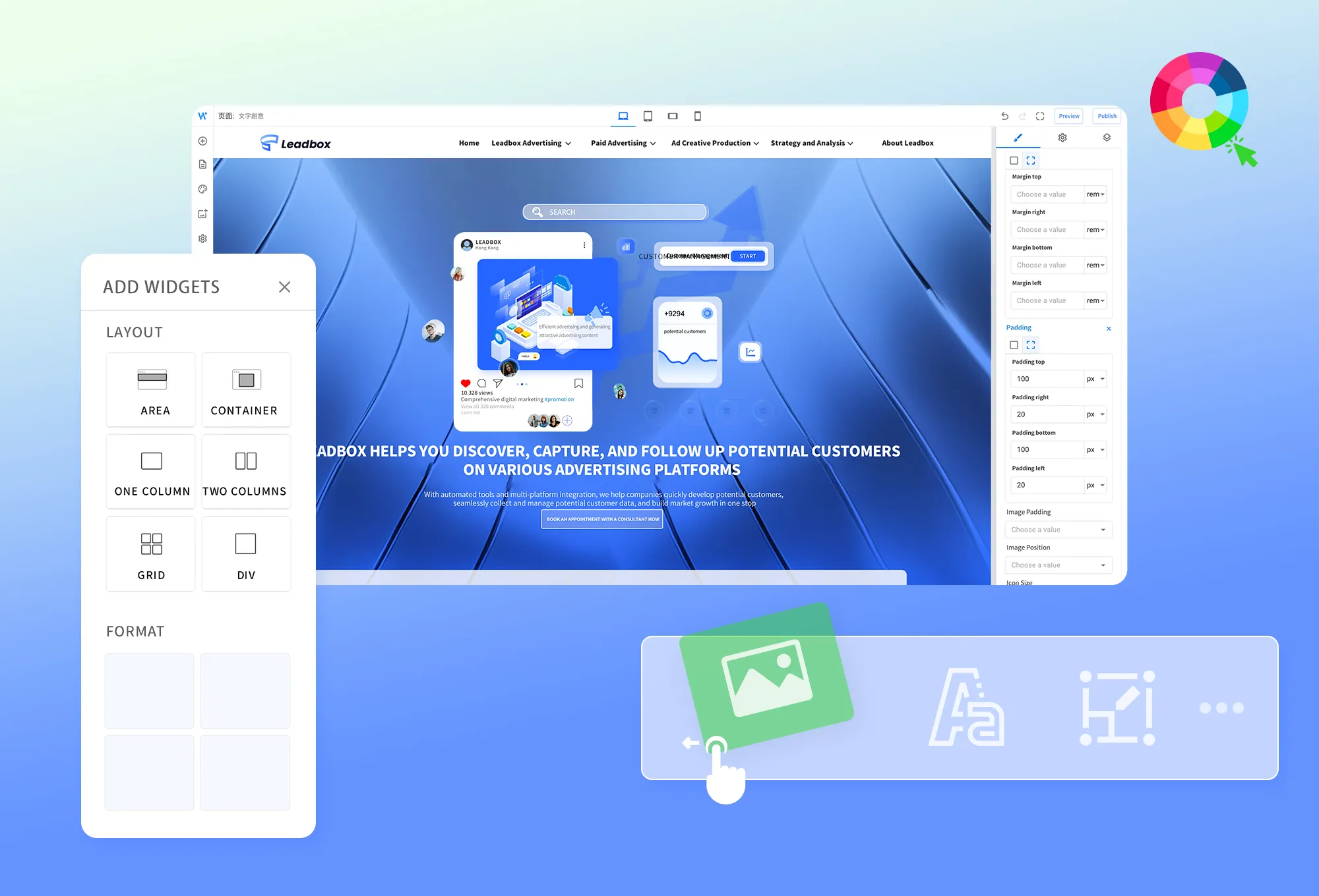 We have self-developed Weber, and we can provide perfect design solutions whether it is color matching, layout, font selection or overall architecture. We have a wealth of pre-made theme designs and support drag-and-drop production, making website design simple and intuitive. Additionally, responsive design ensures that your website performs well on a variety of devices. In addition, we also provide customized logo design and material picture beautification services to make your website both beautiful and practical, and more attractive to potential customers.